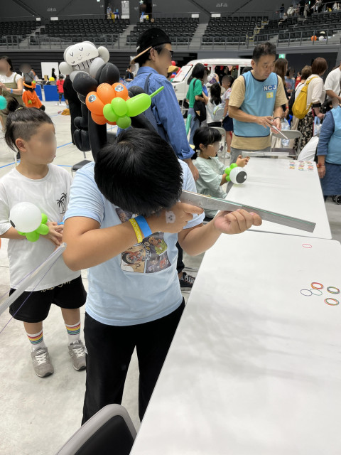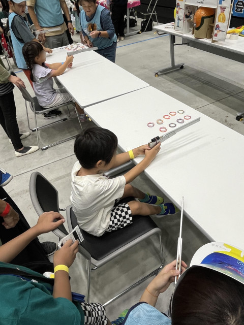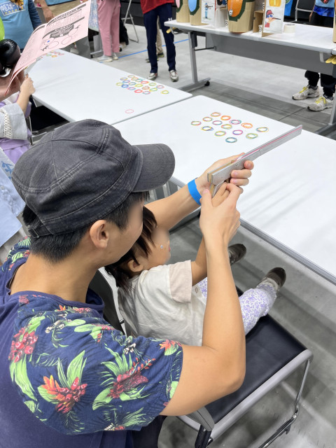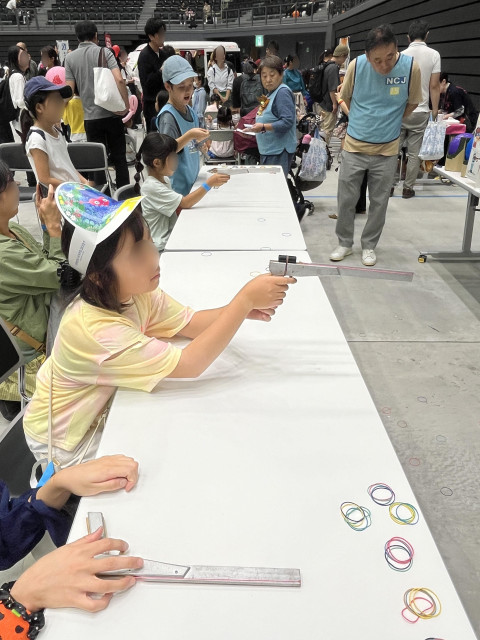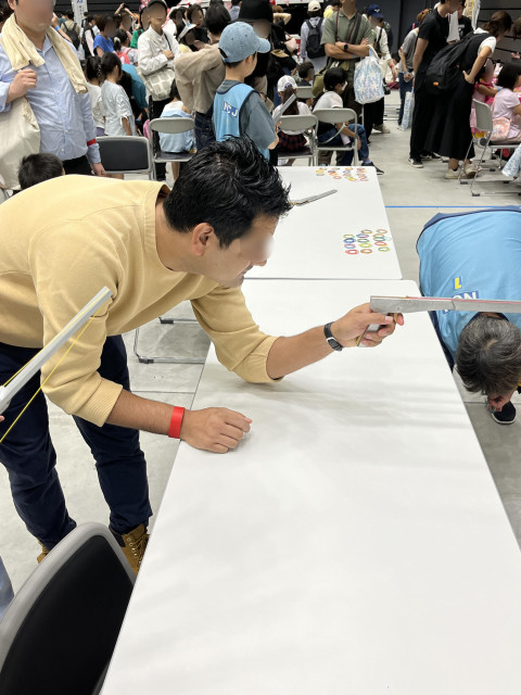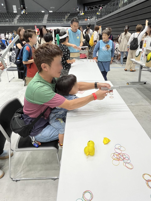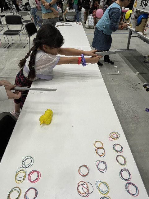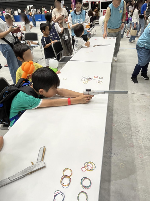 私たちのブースにも508名のご家族の方にお立ち寄りいただき輪ゴム鉄砲をとってもとっても楽しんでいただきました!!