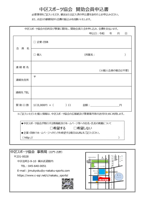【随時募集】中区スポーツ協会 賛助会員