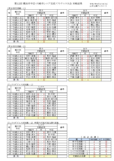 令和7年度 横浜市中区・川崎市シニア交流ソフトテニス大会 結果