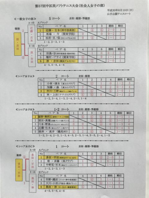 平成30年度 第57回中区民ソフトテニス大会結果