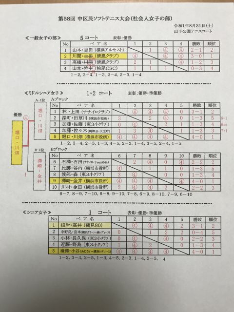 令和1年度 第58回 中区民ソフトテニス大会結果