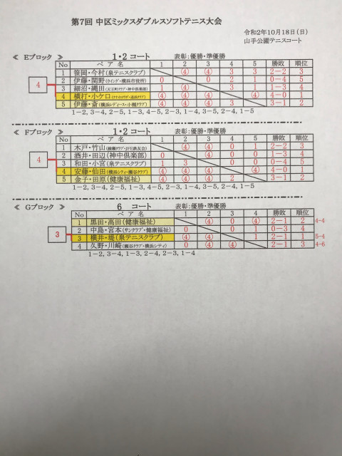 令和2年度 第7回 中区ミックスダブルスソフトテニス大会(結果)
