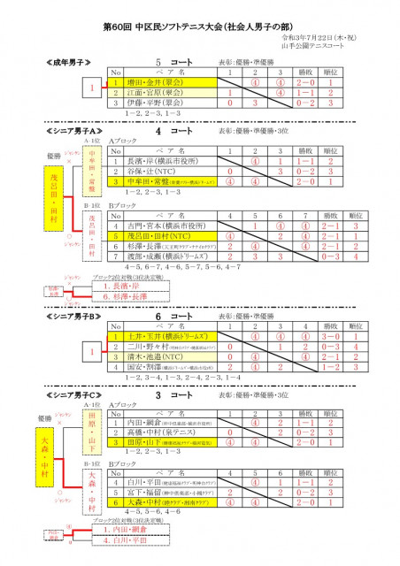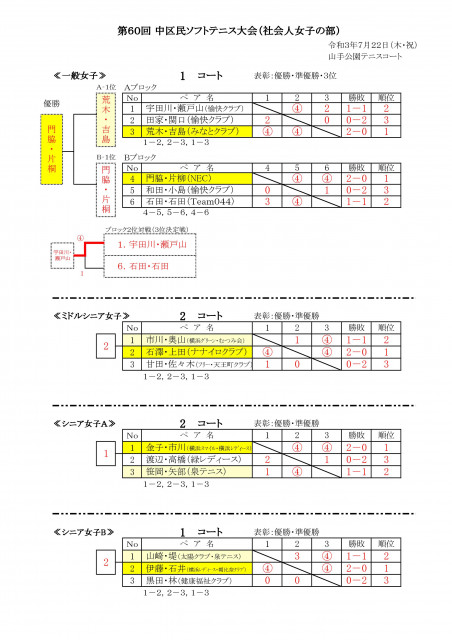令和3年度 第60回 中区民ソフトテニス大会(社会人の部)結果