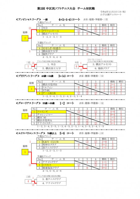 令和4年度 第2回中区ソフトテニス大会 チーム対抗戦 結果