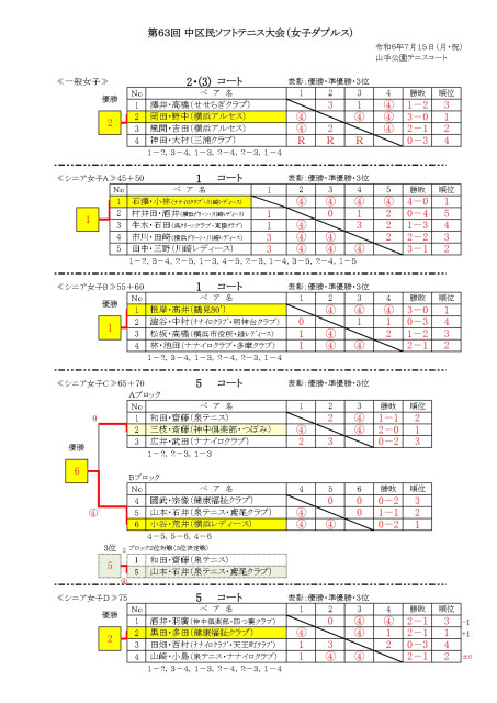 令和6年度 第63回 中区民ソフトテニス大会 結果