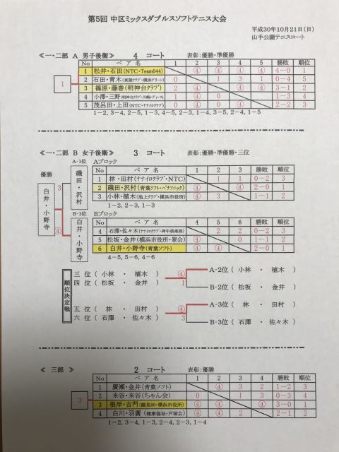 平成30年度 第5回 中区ミックスダブルスソフトテニス大会_結果