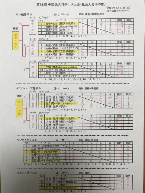 令和1年度 第58回 中区民ソフトテニス大会結果