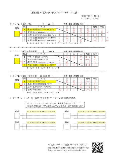 令和7年度 第12回中区ミックスダブルスソフトテニス大会 結果