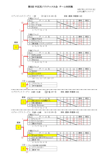 令和7年度 第5回中区ソフトテニス大会 チーム対抗戦 結果