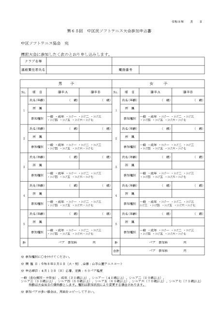⑵ 令和8年度_中区民ソフトテニス大会_申込書