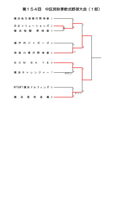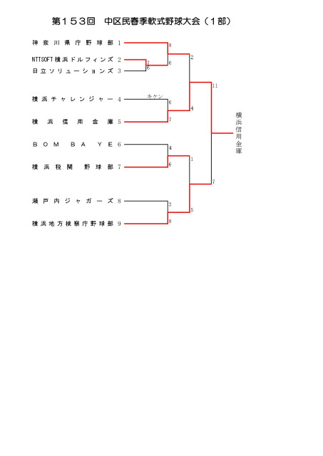 7月26日(土)入船公園で1部の決勝を行いました。 横浜信用金庫が11対7で横浜地方検察庁野球部に勝ちました。