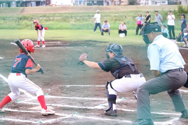 ショートの5年生ユイトが、ホームへ良い送球!!