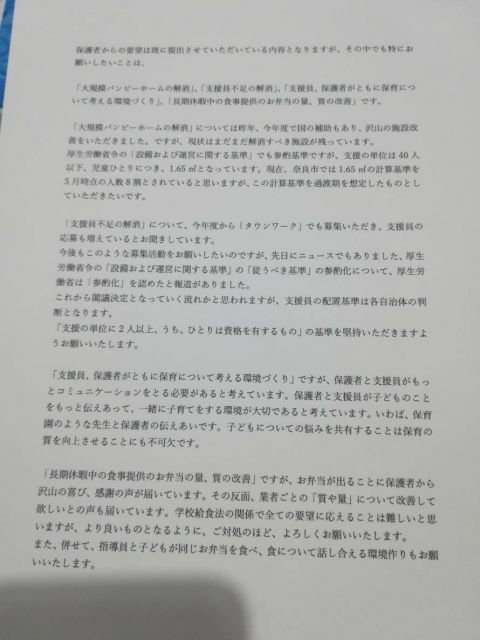 要望書の回答内容は次回の代表者会議(1月)にお伝えしますね。