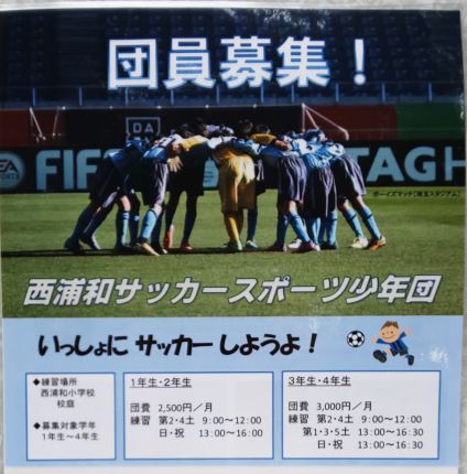 西浦和サッカースポーツ少年団では随時団員を募集しています。 まずは練習に体験参加もしくは見学してみませんか。 問い合わせ先に、学年と体験参加もしくは見学希望日をお伝えいただければこちらからご連絡いたし...