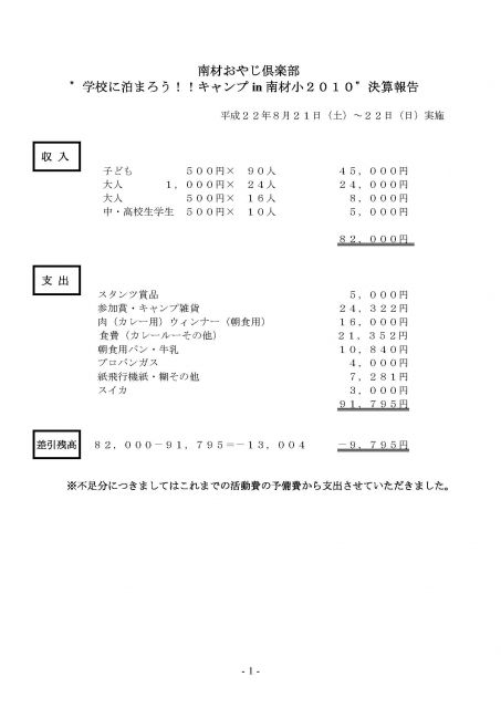 キャンプin南材小2010写真・会計報告