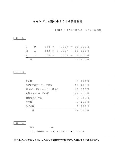 キャンプin南材小2014写真・会計報告