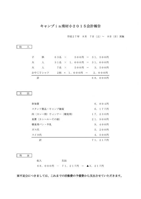 キャンプin南材小2015写真・会計報告