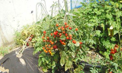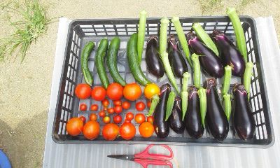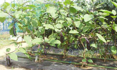 ナスはそろそろ秋ナスの為、枝を3本位残しカット