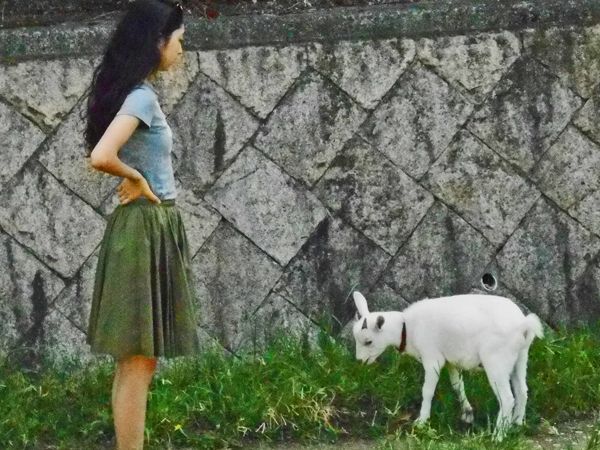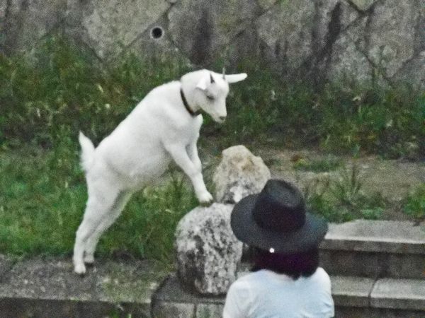 箕面川河川敷にて。可愛い子ヤギ。飼い主が名を呼ぶとピョンピョン跳ねて