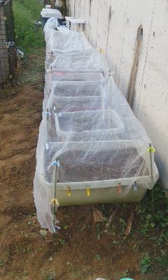 葉物は虫が付きやすいのでネットを張りました