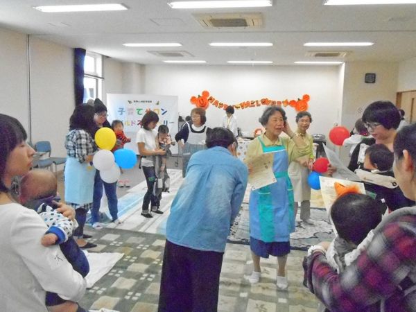 0~3歳児の新米ママと子育てについての指導員、保健師さん等に相談やママさん同士の情報交換の場を提供しています。そのスペース作りのボランティアに出向いています。その風景です。