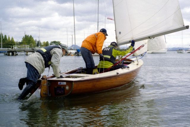 お昼前に一回セイリングと出艇しましたが、北風が急に強くなりまた、センターケース付近からの浸水がありハーバー沖でUターンして艇庫に戻ることになりました。