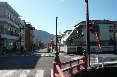 大門橋より、トンマカ通りと遠くに紀州富士(龍門山)を望む。