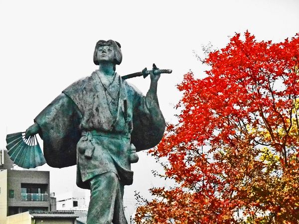 時雨の中を四条大橋、出雲の阿国さんに挨拶