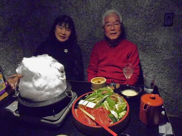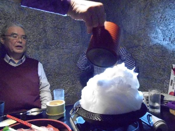 すき焼きの様子。綿菓子にわりしたをかける。