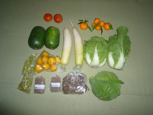 トウガン 1ケ 200円 ダイコン 1本 150円 白菜 1ケ 100円