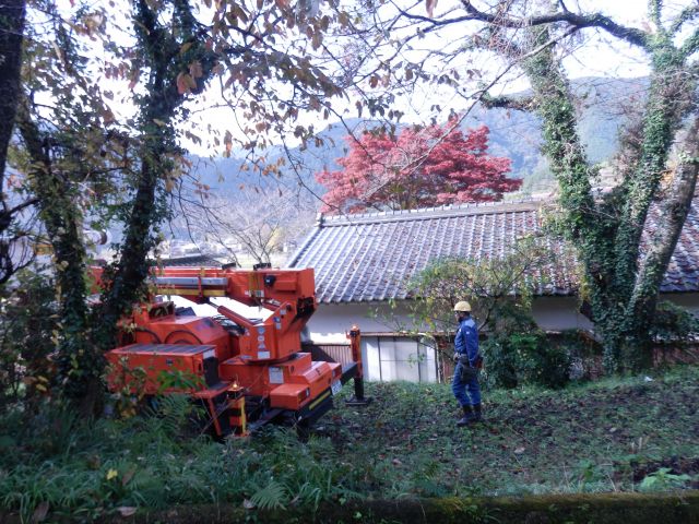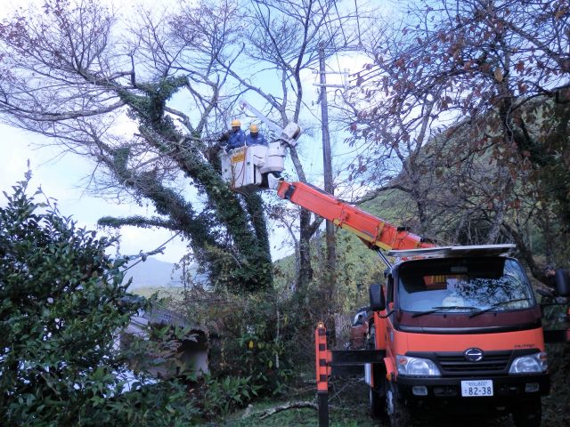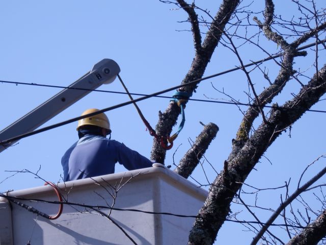 関西電力の電線やNTTのケーブルに触れているため、台風に備えて伐採。