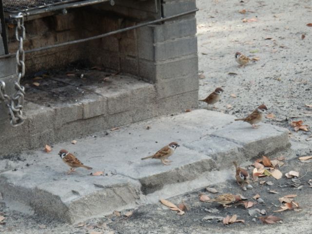 一時、全国的に雀が激変し絶滅危惧種に指定されそうになりましたが、最近、私の散歩コースでも よく見かけます。ここの雀はよくなついていますね。