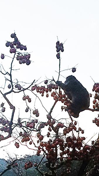 瀧道に渋柿が鈴なり。しかし甘くならないのでサルも気が気じゃない。