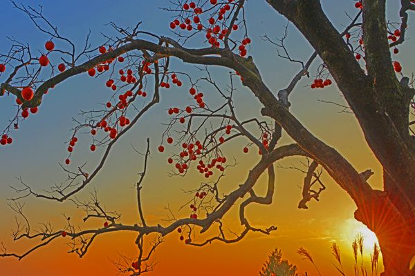 カラスも手を出さん渋柿、画になるなー。半日かかりの作品です。