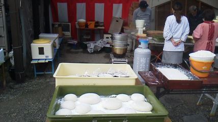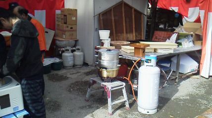 つく機能しか無い餅つき機のためにLPガスでもち米をむしました。