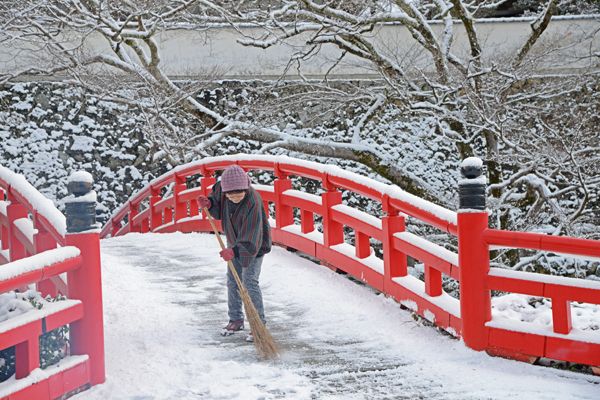 予報通り今朝は今冬初積雪。爺は簡易アイゼン着装し愛用カメラ担いで裏山へ。