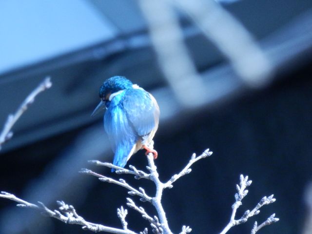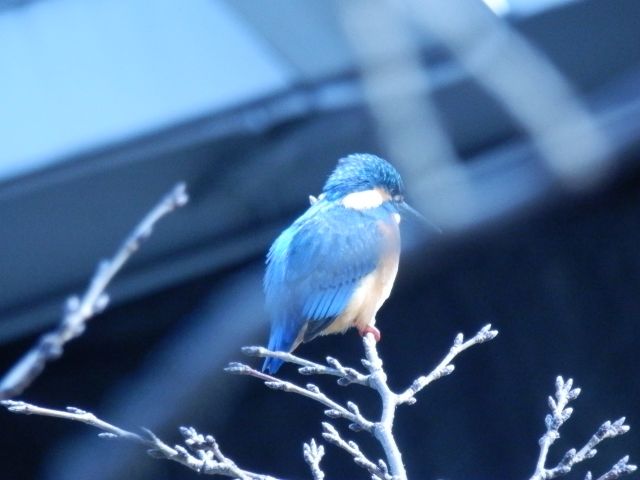 川面にせり出した桜の枝にとまっていました。これがカワセミだ・・・と思った瞬間