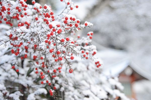 境内に雪をかぶった南天の実