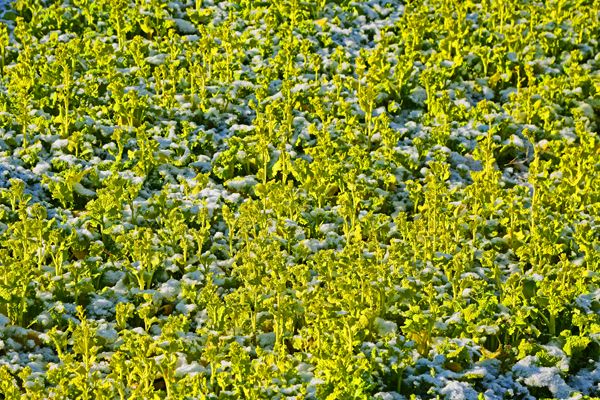 雪に負けず菜の花が健気に開花を待っています。もうすぐ春ですね