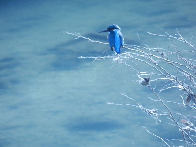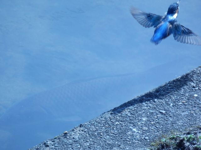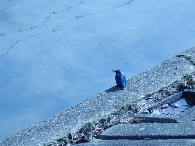 枝から下りて川岸の最短距離で獲物を狙っています。渓流のハンターと呼ばれていますが、こんな町中でも見られるとは感激です。