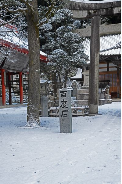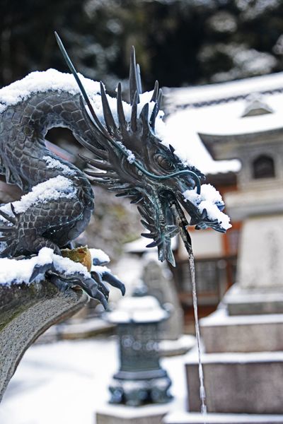 琵琶を持って雪の中を弁財天さんが立っておられます。