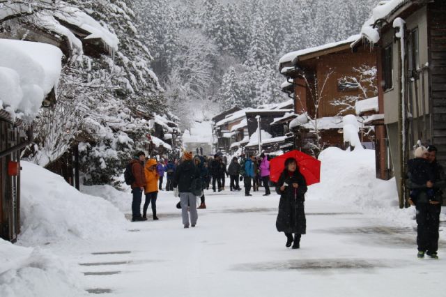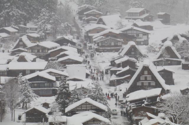 白川郷の街並みにも、<●△%◇&>を話す多数の人が