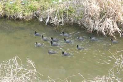 今日も風は冷たいが天気晴れ、散歩の途中に中津川でカワイイ団体を観ました。