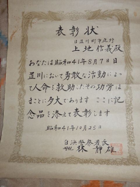 人命救助の表彰状 昭和41年10月
