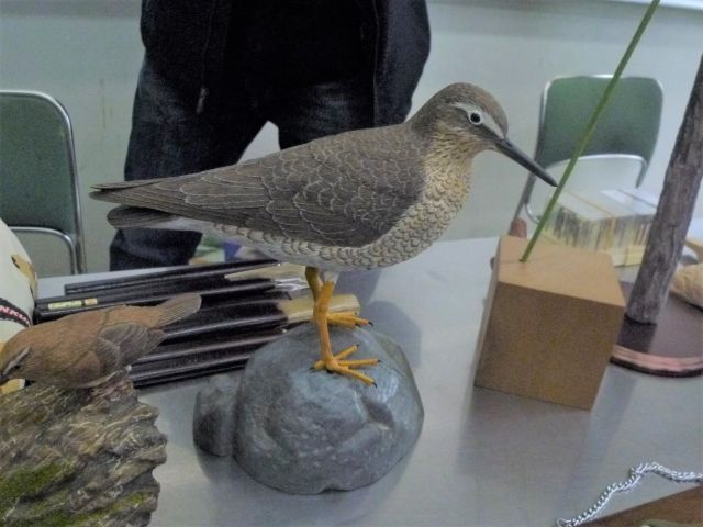 イソシギ(カービング) 実物大 よく出来てますね(紀の川ホール講演)