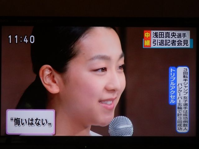 竜田川のサクラが散り始めた日に浅田真央ちゃんが引退記者会見。
