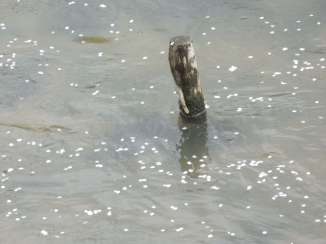 川中の杭と花筏 発想はいいと思うんですが・・・カメラは置いといて・・・