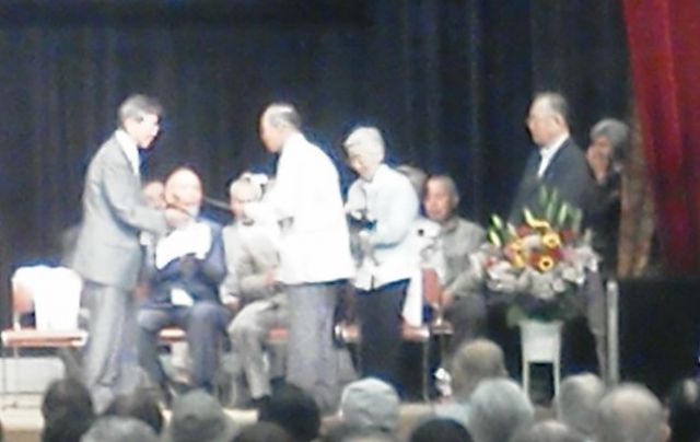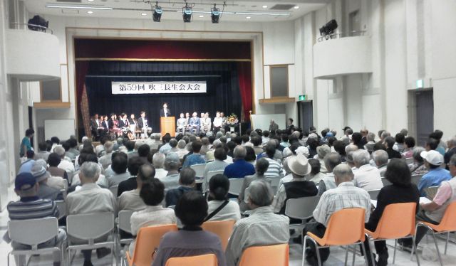 会場ではちようど式典が開始されたばかり、地区の爺さんばあさんが集合。