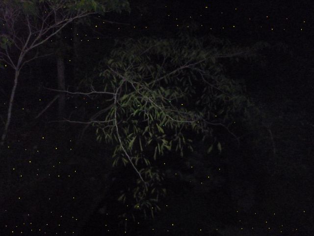 近年、まれなことです。午後8時ごろがピーク。川面から山に湧き上がっています。毎晩見に行きました。