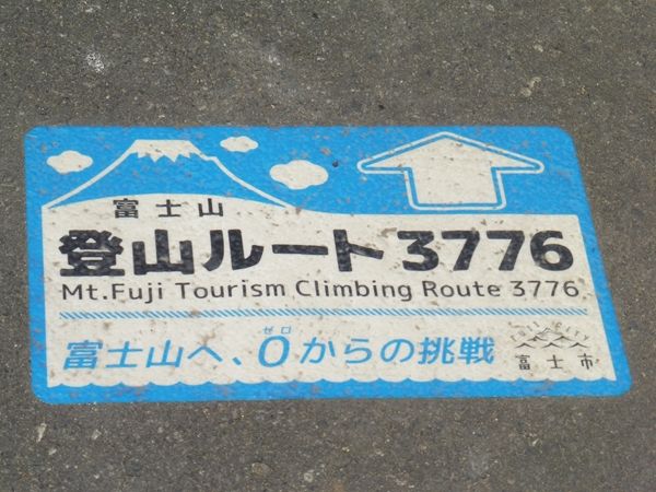 海抜0mから3776m頂上までの起点の標識がアスファルトにプリントされていました。
